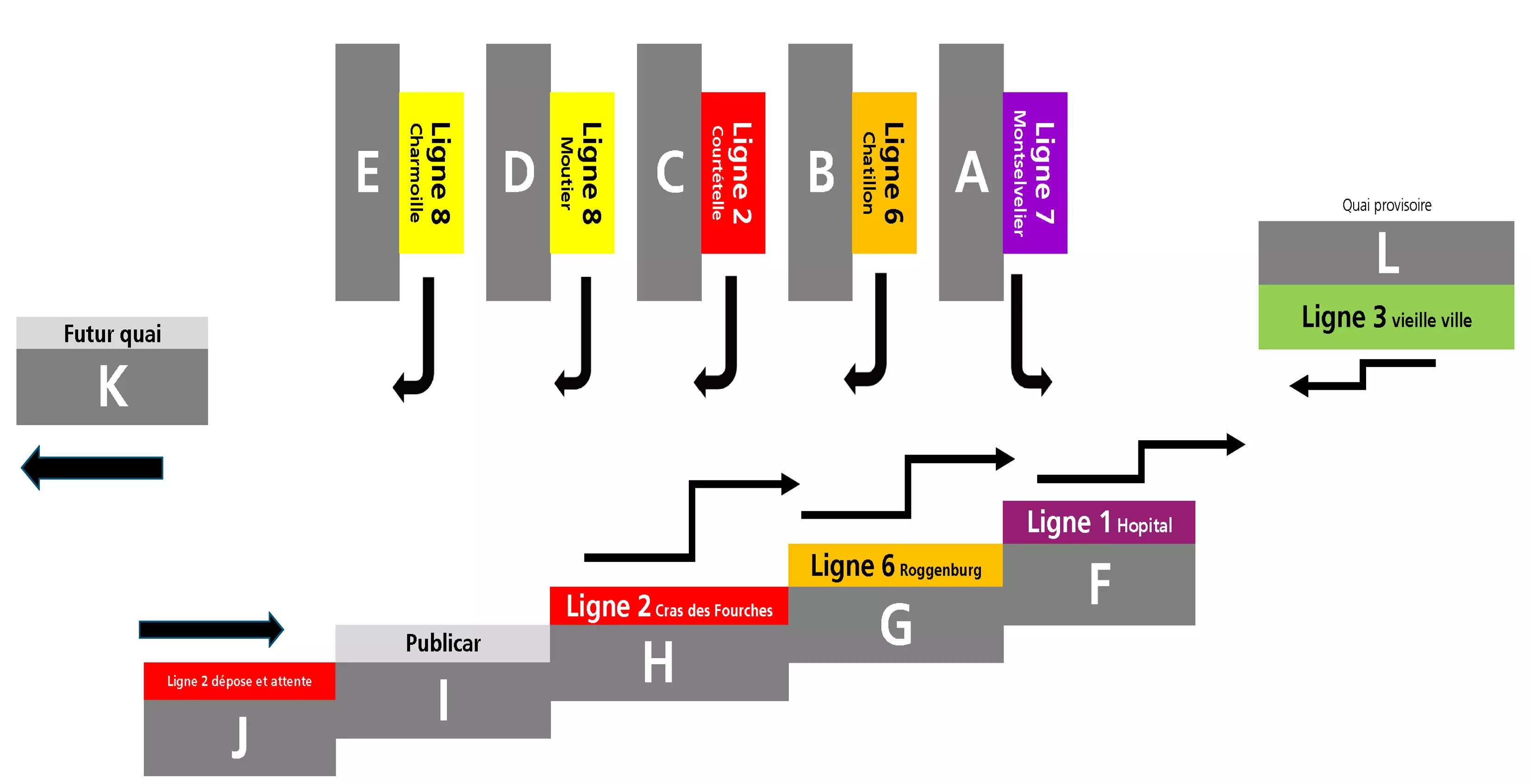 Voici les quais attribués à nos lignes: